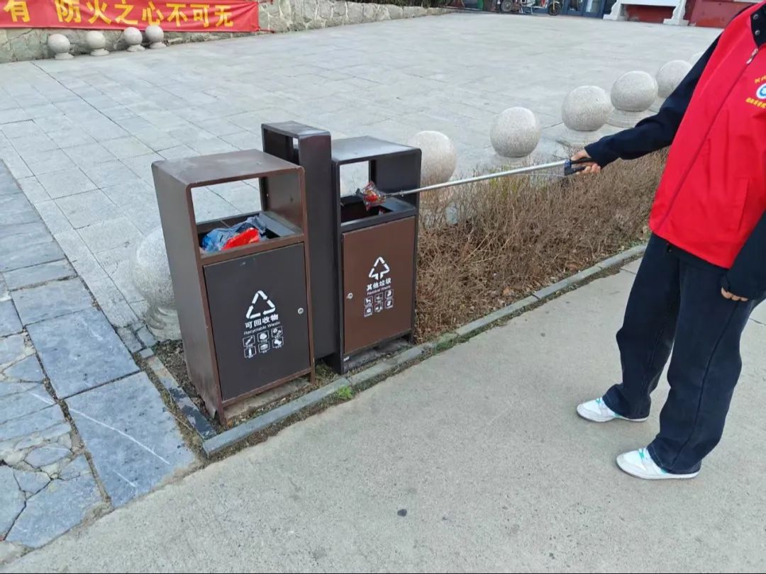 随后,师生们摇身一变成为环保卫士,扫帚在手中挥舞,垃圾袋迅速‘吃’进各种垃圾,用汗水为封龙山梳妆打扮。