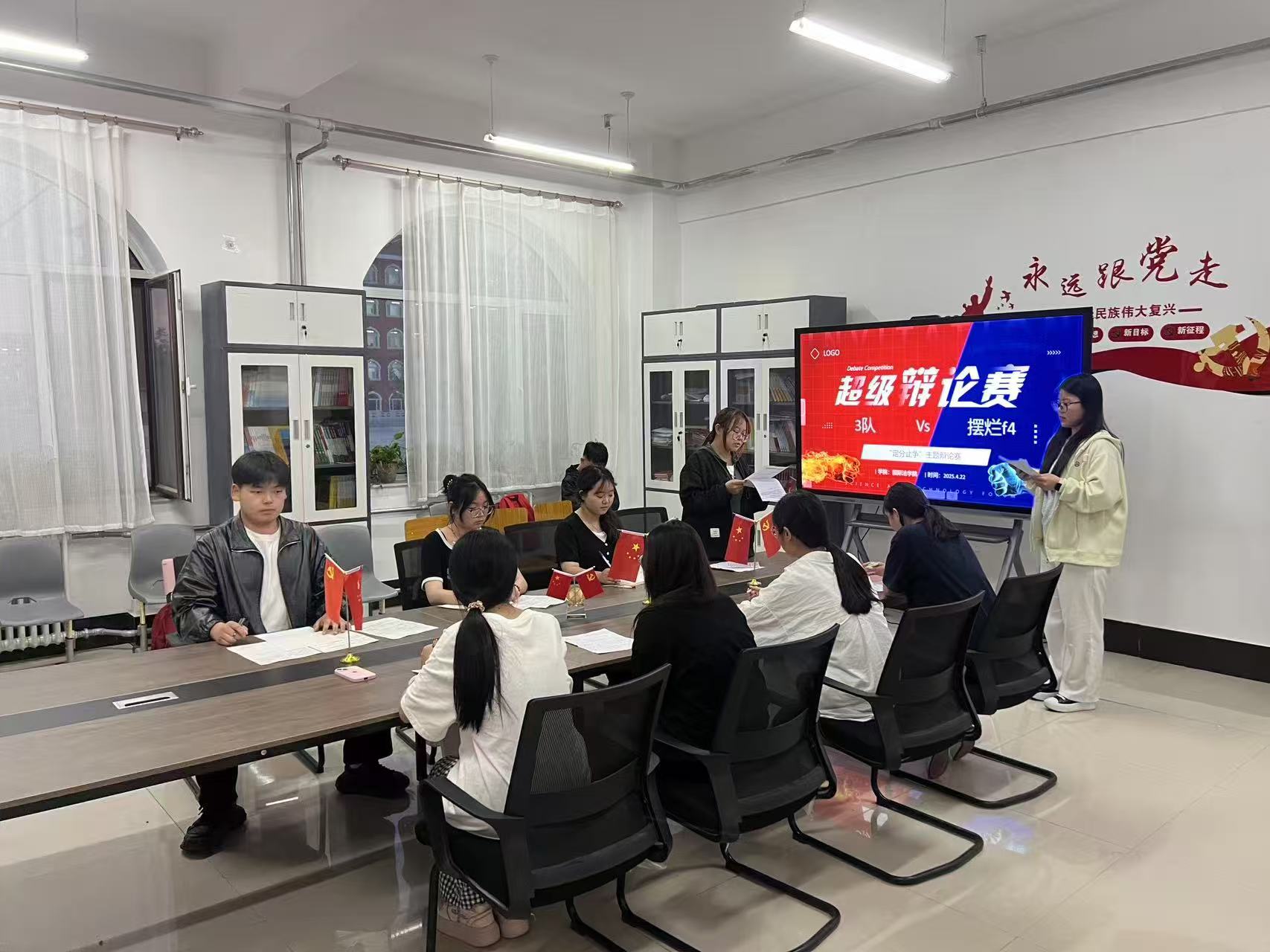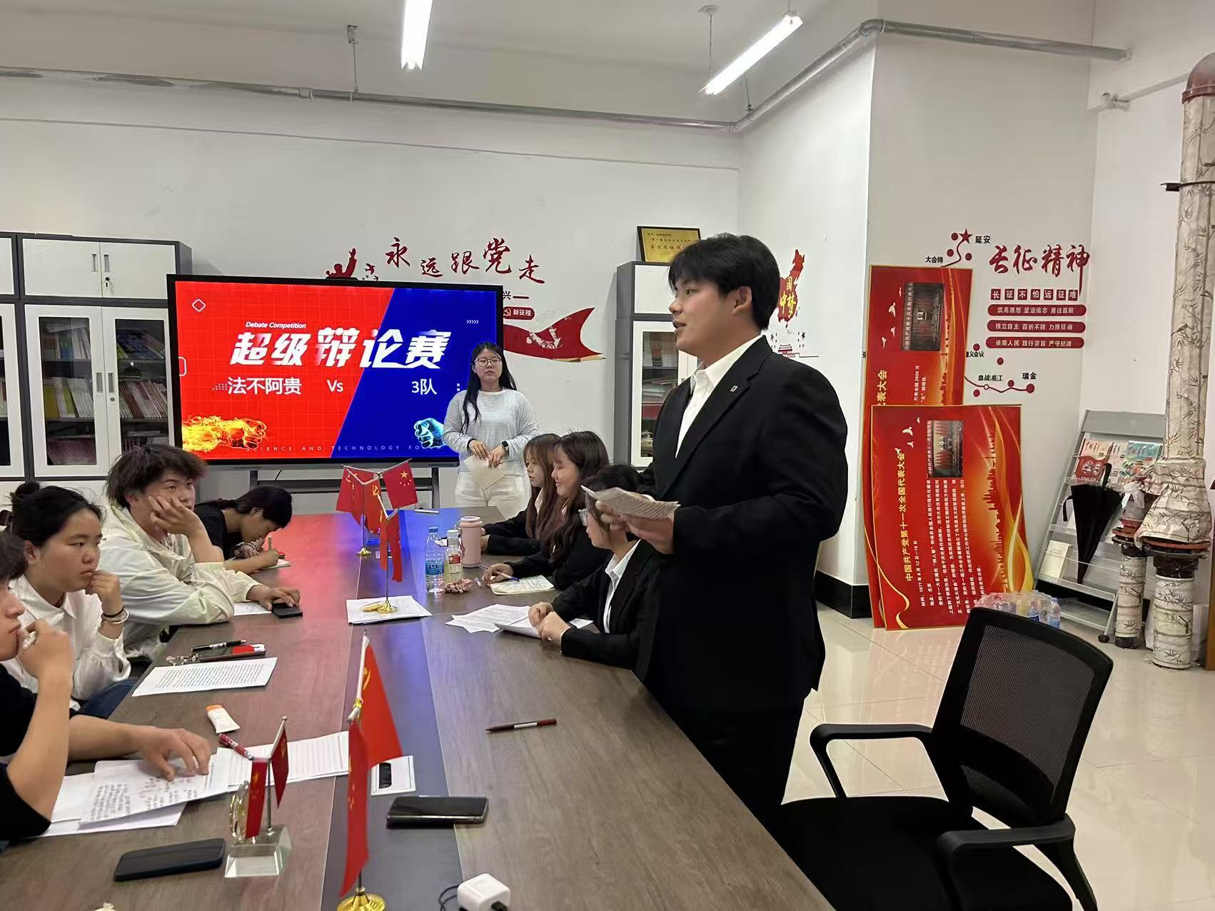 4月22日晚,由国际商学院法学院行政部举办的“定分止争”辩论赛在四号楼119举办初赛。经过初赛的激烈角逐,法不阿贵队和3队脱颖而出,在现场展开了一场逻辑与口才的巅峰对决,顺利进入复赛。
