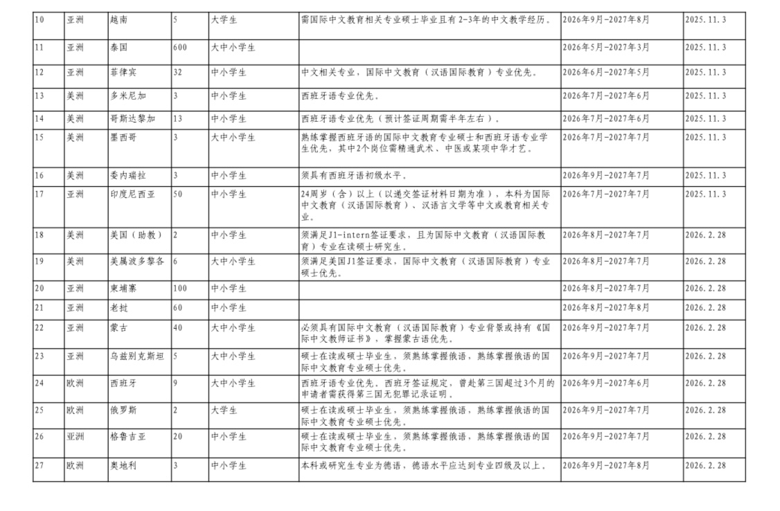 近日,教育部中外语言交流合作中心正式发布《关于开展2026年国际中文教育志愿者报名工作的通知》,全年拟招募约1230名志愿者赴28国任教,身为河北外国语学院学子的你,此刻便拥有了将专业所长化作文化桥梁的宝贵机遇。