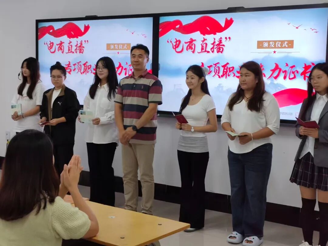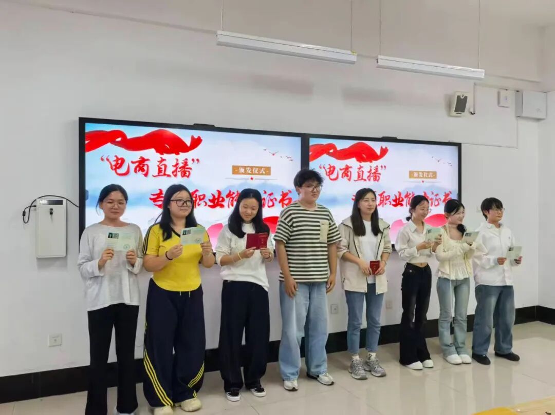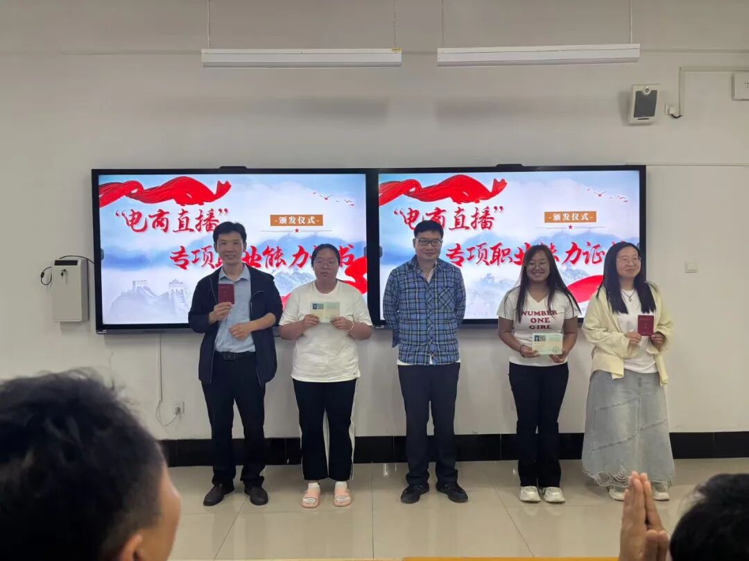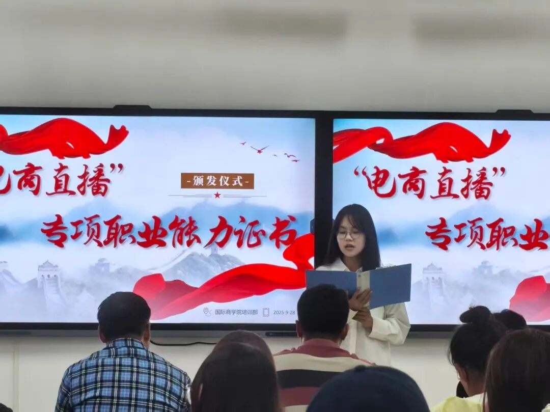 2025年9月29日,国际商学院培训部民族团结楼516-518教室隆重举行了“电商直播”专项职业能力证书颁发仪式。这不仅是对一届学员的肯定,更是我们连续两届培训班交出的100%考核通过率的亮眼成绩单!