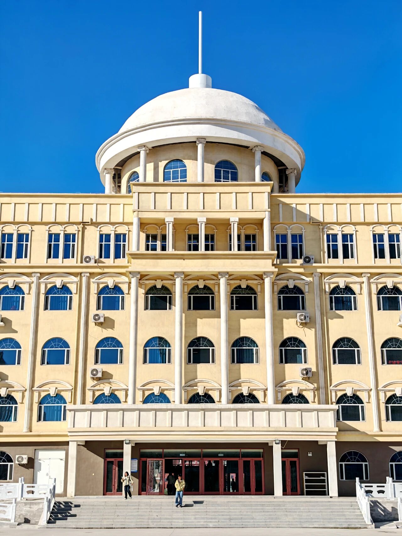 校园里的民族团结楼以其独特的建筑风格惊艳众人。穹顶融入蒙古包元素,蓝白配色灵动雅致,金色尖顶添了份庄重,把民族文化与现代美学揉得恰到好处。它不仅是地标,更藏着民族团结的心意。