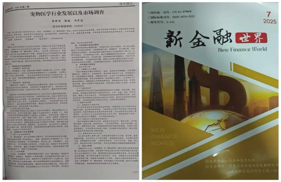 一篇题为《宠物医学行业发展以及市场调查》的论文,被《新金融.世界》成功收录发表。