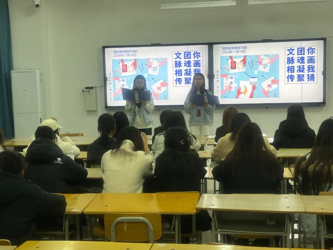 为弘扬中华优秀传统文化、增强学生文化自信力,2025年11月20日,国际商学院学习部“团魂凝聚,文脉相传”主题活动在民族团结楼316-318教室顺利开展,24级、25级学生积极参与,在趣味互动中感受文化魅力、筑牢文化自信。