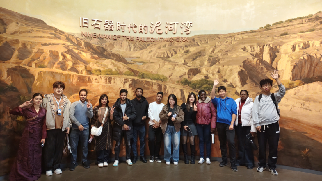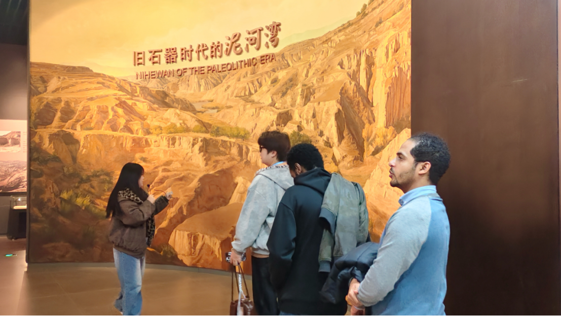 在“石器时代”展厅,学生甘甜指着打磨粗糙的石斧、陶片向外国教师解释:“这些是8000多年前先民的工具,他们用石头狩猎、制作陶器,这是河北文明的起点。”外教们蹲下身子,仔细观察石器上的纹路,有人用手指轻轻触摸展柜玻璃,仿佛在与远古先民“对话”。来自孟加拉的外教Rion 感叹:“在西方,我们常认为文明的起点在两河流域,但在这里看到的文物证明,中国北方的文明同样悠久,这种跨越时空的共鸣太神奇了。”来自埃塞俄比亚的外教Negash 激动地补充:“在欧洲,我们常认为人类文明起源于非洲和近东,但这里告诉我们,东亚同样是人类演化的重要舞台。”