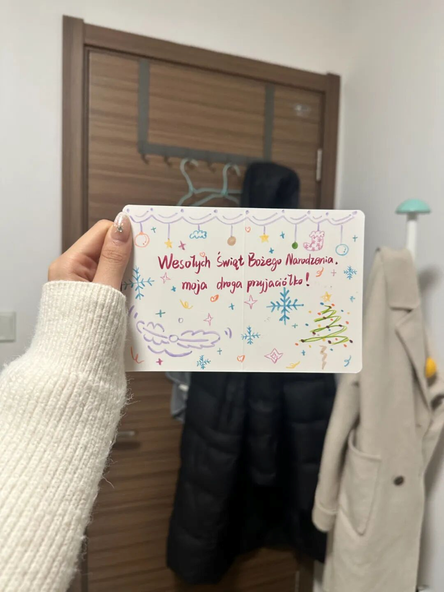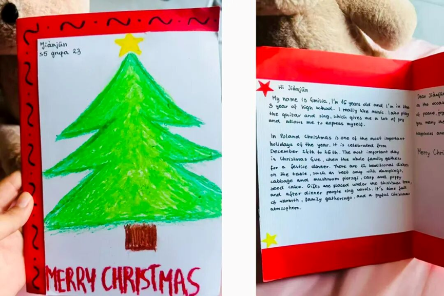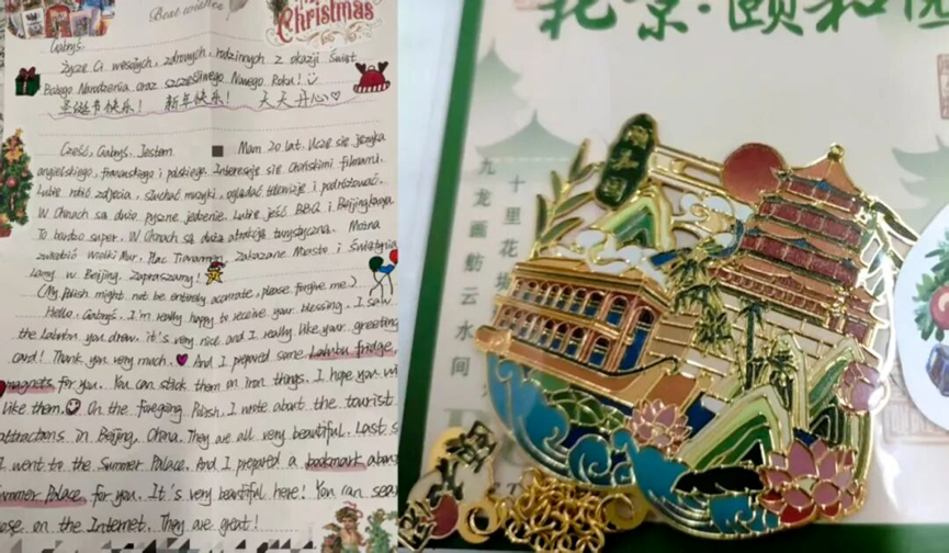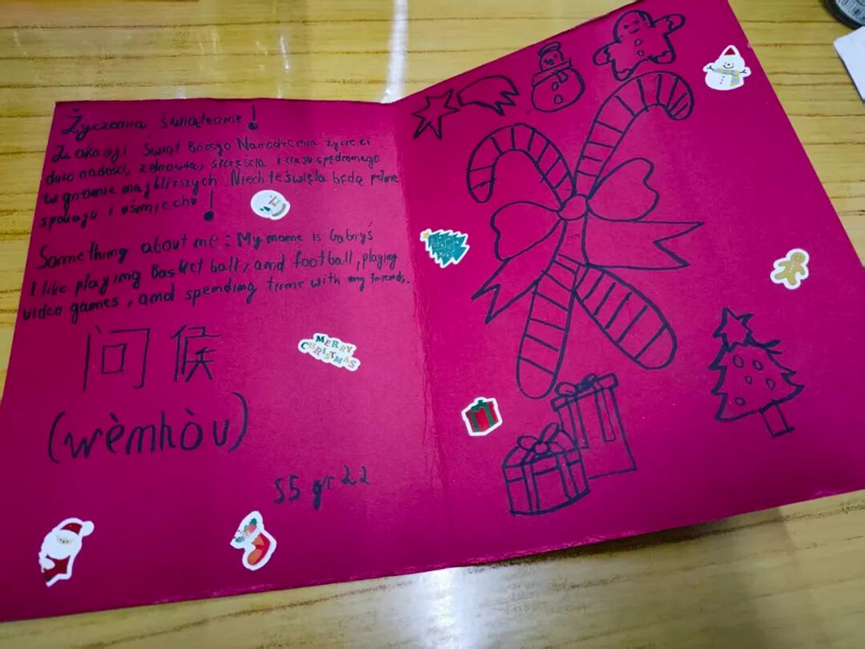 学生们自主选定书信主题,在教师指导下完成内容撰写以及语言的润色,并通过国际邮政渠道寄送信件。许多学生在信中巧妙融入本国节日、景点、美食、语言等元素。中国学生用细腻的笔触,向波兰笔友描绘长城的雄伟、端午的粽香、京剧的婉转;波兰学生则以生动的文字,分享华沙老城的古韵、肖邦音乐的悠扬、传统节日的欢乐。部分信件还附有手绘插图、个人照片、手工贺卡及具有民族特色的小礼物,使书信内容更加生动鲜活,体现了同学们真挚的情感以及国家深厚的文化韵味。