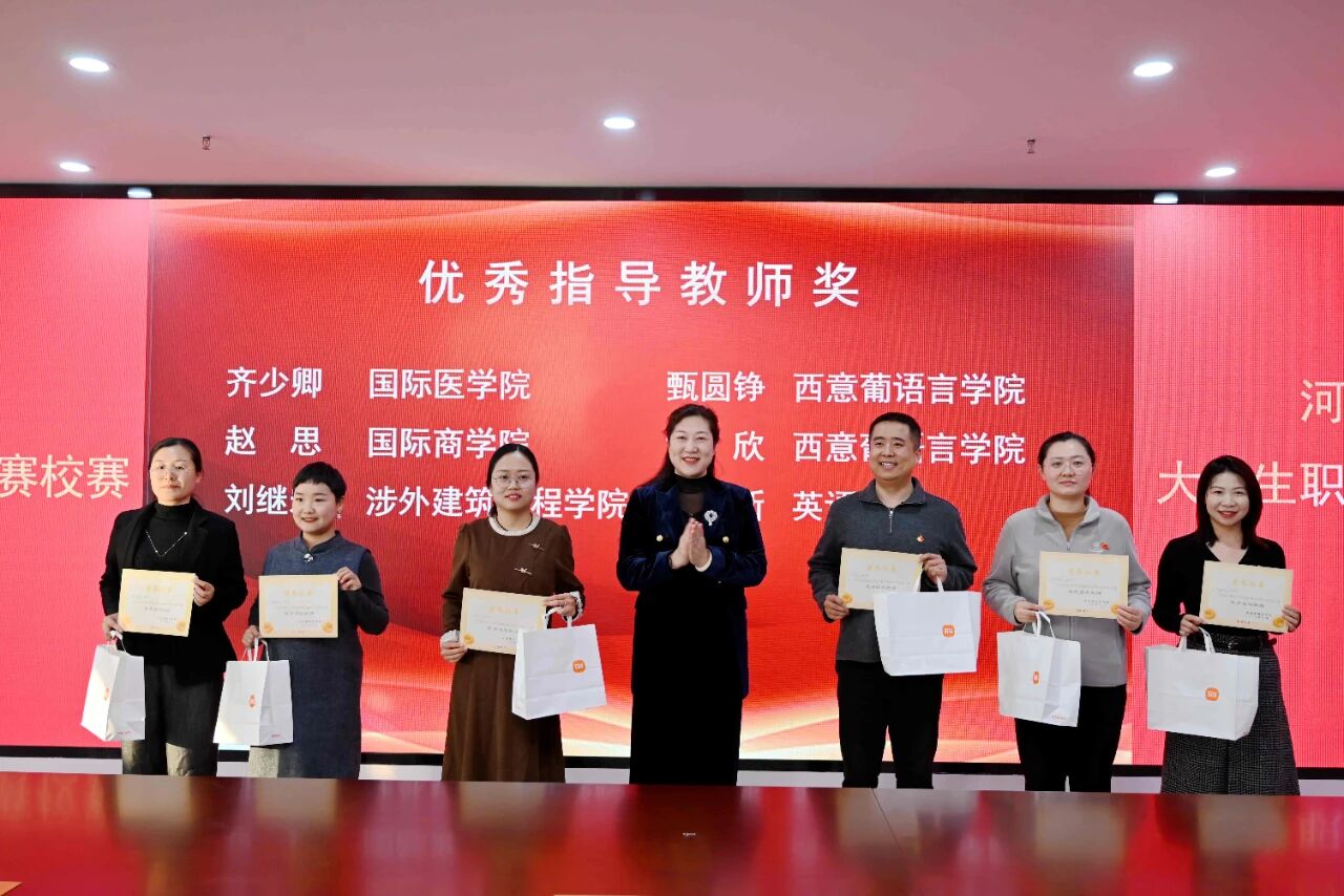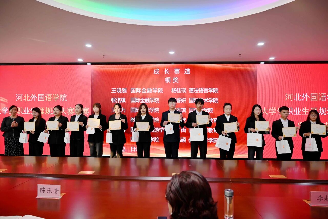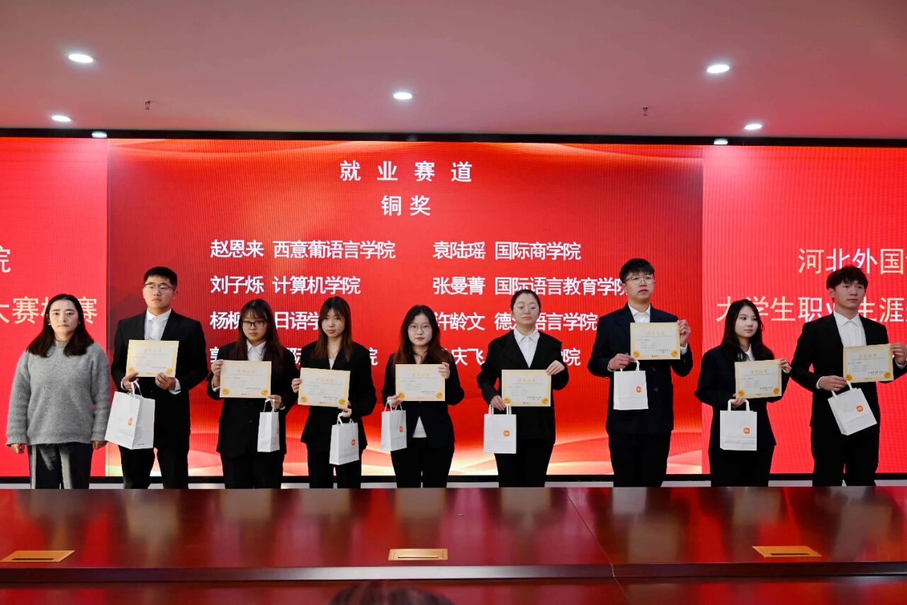 大赛自10月启动,获得河北外国语学院全校师生积极响应,20714名学生报名。经层层选拔,40名选手进入校决赛,最终成长赛道、就业赛道共产生金奖6名、银奖11名、铜奖21名,优秀指导教师6名,优秀组织单位6个。学校副董事长、执行校长习伟教授,党委委员、副校长陈乐音教授,河北省创新教育学会学生发展指导分会常务副理事长、河北省青年民营企业家商会书记、知德立行教育集团董事长、国家认证生涯规划师赵恒智先生,教务处、教学质量监控办公室、学生创业就业管理处领导莅临比赛现场和颁奖现场。