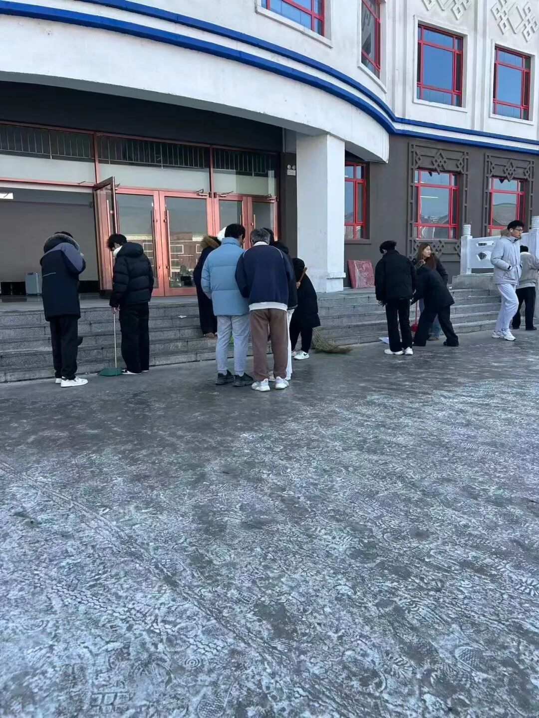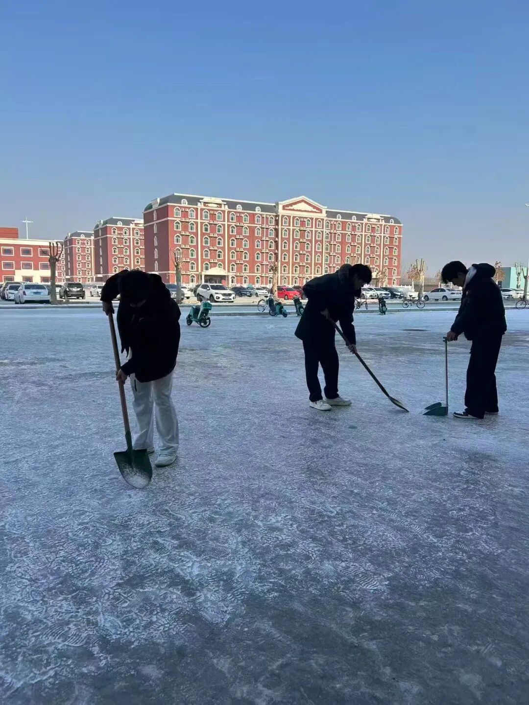 雪落无声,一夜之间为校园披上素白盛装,教学楼出入口及周边路段积雪结冰,给师生日常出行埋下安全隐患。为保障通行顺畅,将资助育人理念落到实处,河北外国语学院国际商学院奖助部门联合资产部门,组织学生开展专项清雪活动。