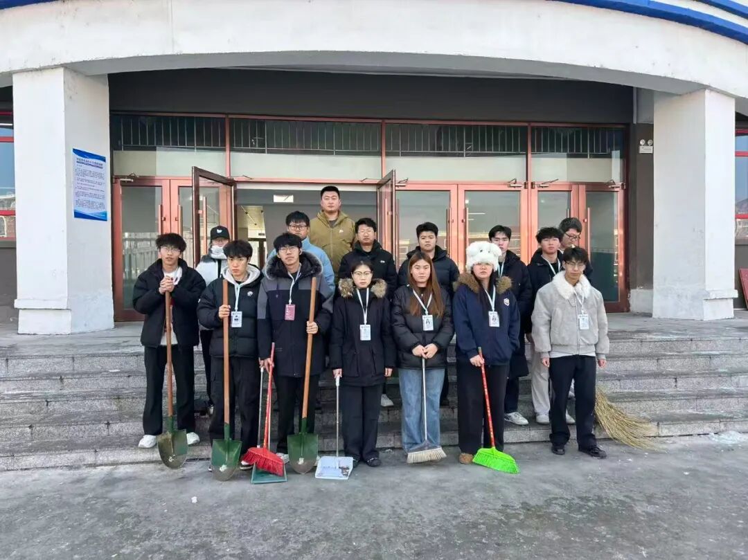 寒风吹红了脸颊,来自国际商学院的学生这次能为校园出一份力,我们觉得特别有意义。”工具碰撞的清脆声响与同学们的交谈声交织,在雪后静谧的校园里格外动听。