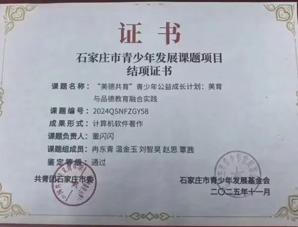 赵思老师和董闪闪老师也分别成功立项石家庄市青少年发展基金会课题各一项。两位老师的课题从不同角度切入,关注青少年发展的具体领域。