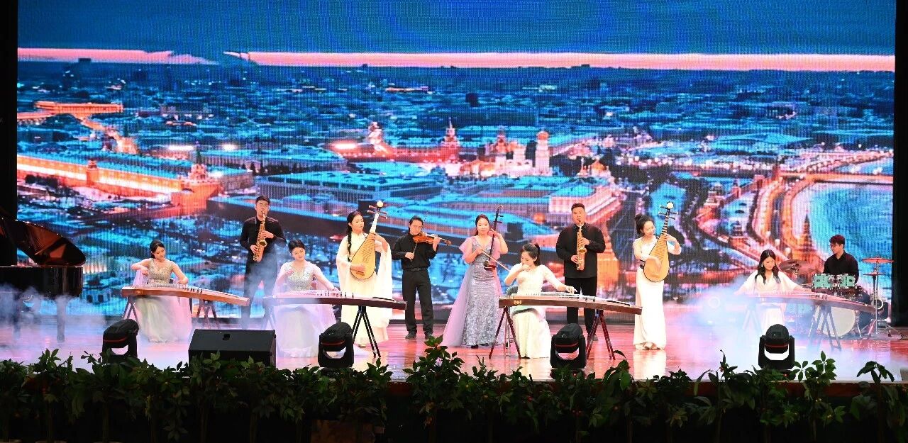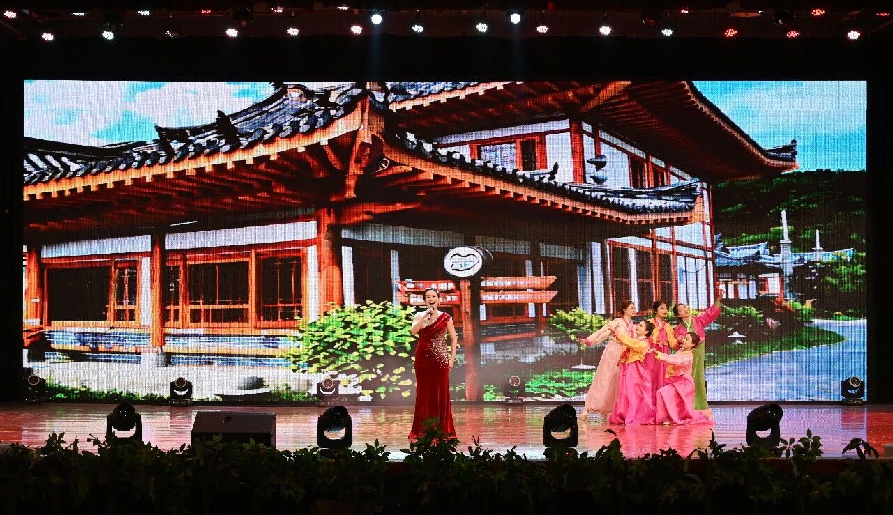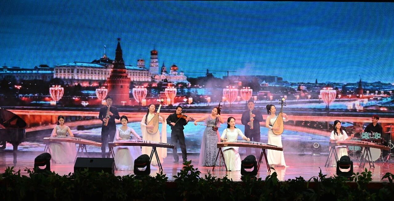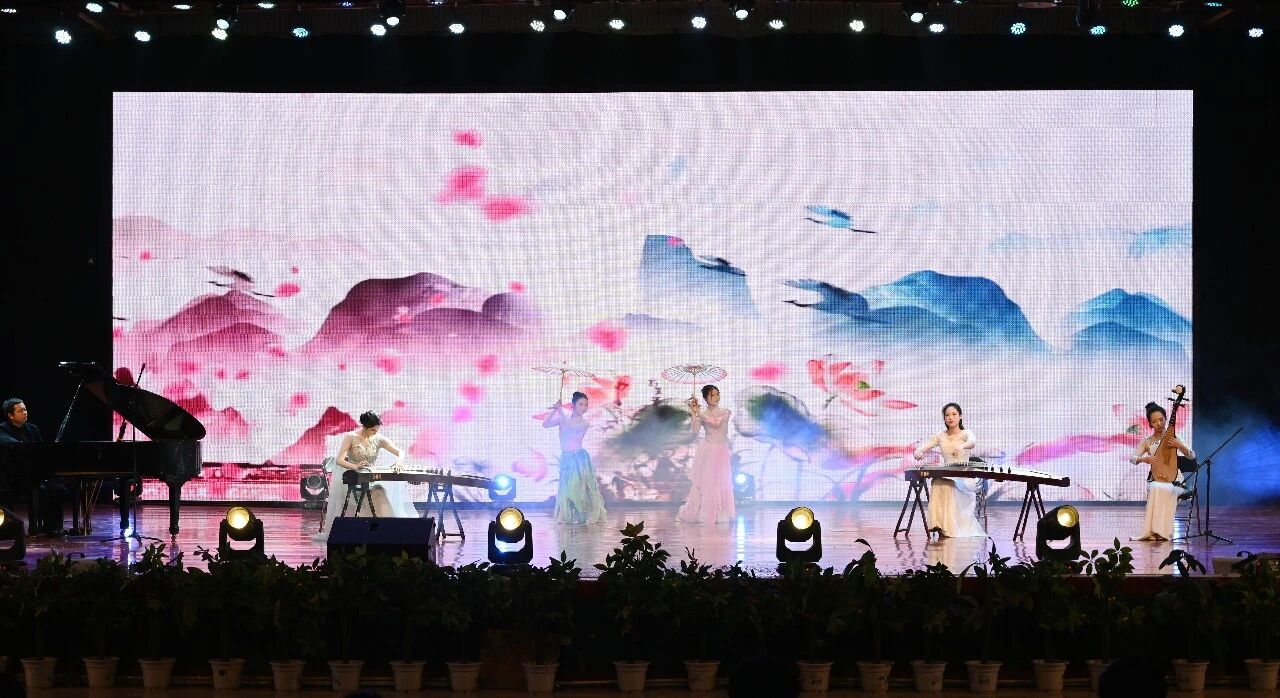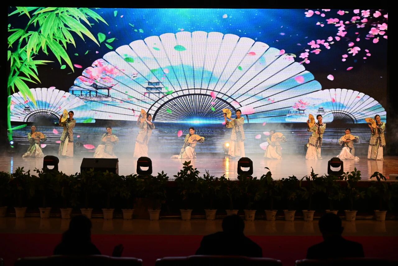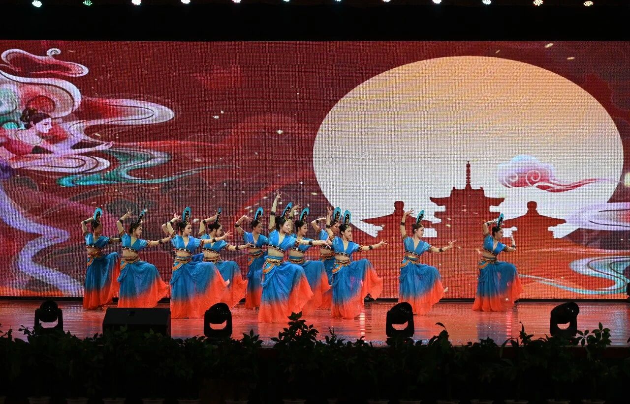当晚7时,大学生活动中心张灯结彩、暖意融融。开场歌舞《好运全都来》以灵动舞姿与饱满热情点燃现场气氛,拉开了晚会的序幕。整台晚会涵盖歌曲、舞蹈、情景剧、服装展示、诗词朗诵、乐器合奏等22个节目,兼具深厚的传统文化底蕴与鲜明的国际创新元素,勾勒出多元文明和谐共生的生动图景。中外师生联袂演绎的《但愿人长久》将朗诵、歌舞、器乐与书法融为一体,传媒学子的经典诵读与外籍专家的笔墨挥毫相映成趣,艺术师生的曼妙演绎让诗词古韵直抵人心;《乐响四方》汇聚古筝、琵琶、二胡等中国传统乐器与萨克斯、小提琴、架子鼓等西方乐器,搭配动感拉丁舞,东西方音律碰撞交融,将晚会推向高潮,赢得全场阵阵喝彩。晚会上,灵动的脸谱与飘逸的敦煌飞天等中国非遗文化元素相互交织、激情碰撞,宛如一幅绚丽多彩的画卷徐徐展开,瞬间吸引了在场中外师生的目光,让他们沉醉于这独特的东方韵味之中。