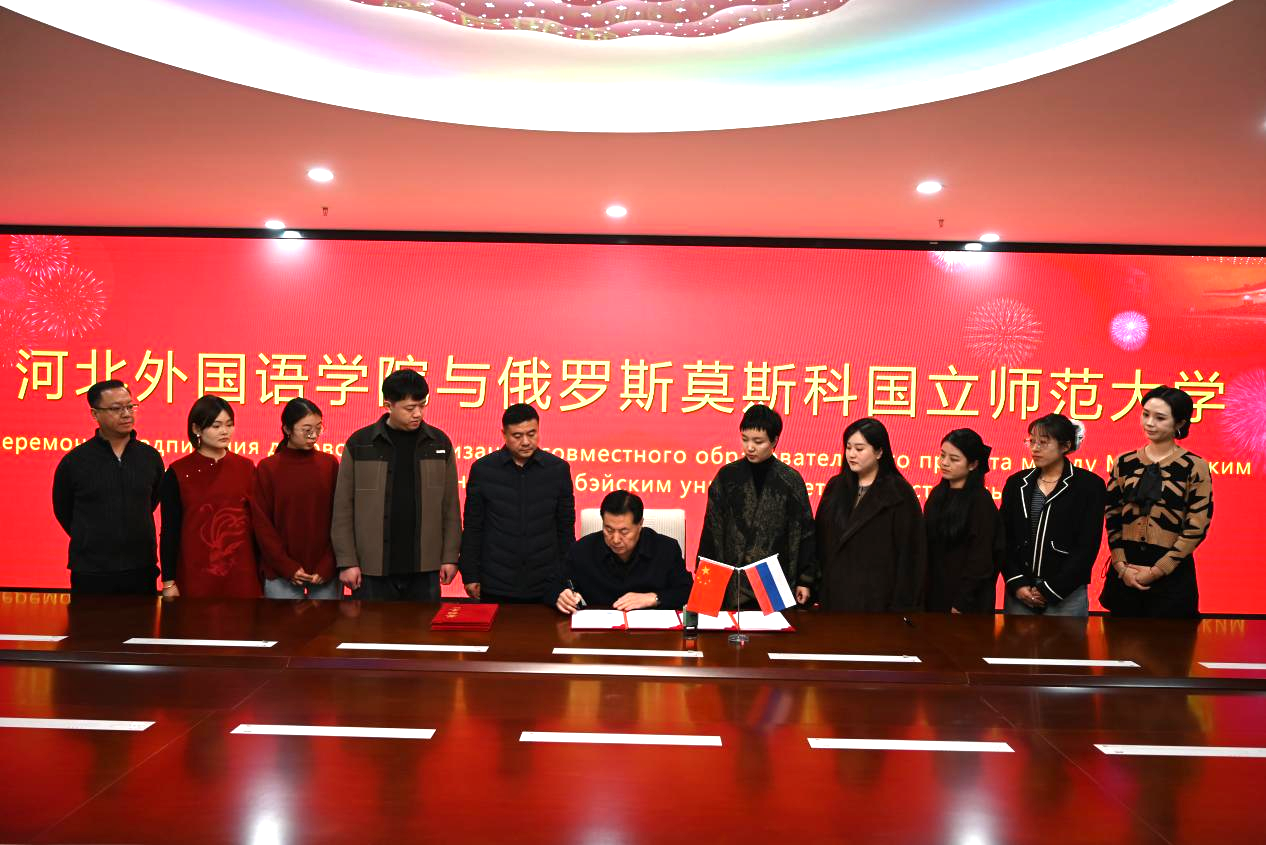 此次河北外国语学院欧亚语言学院与莫斯科国立师范大学再度携手,是河北外国语学院坚定不移推进国际化办学战略、深耕国际教育合作的重要成果。双方将充分发挥各自优势,共同致力于培养精通语言、通晓规则、具备国际竞争力的复合型人才,为促进中俄教育文化交流、增进民心相通贡献力量。这份合作协议的签署,不仅延续了两校深厚情谊,更为未来合作共赢勾勒出广阔前景。