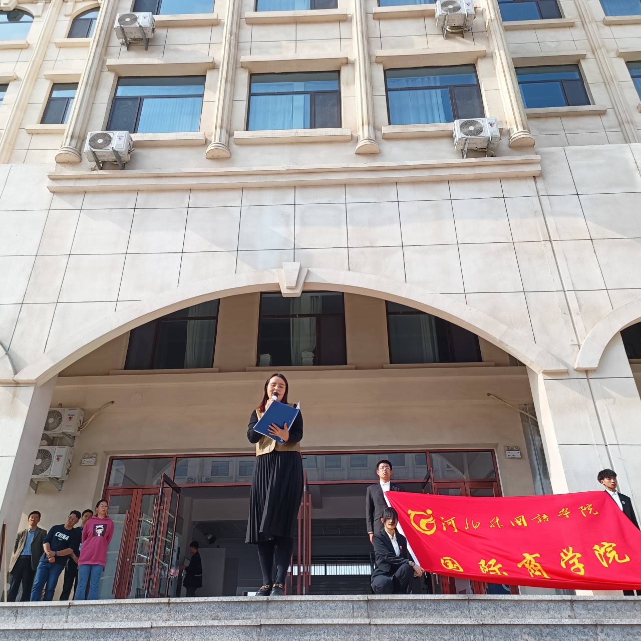 为切实加强学校安全管理,增强学生的安全意识,完善校园文明建设,营造良好的学习氛围。2023年4月26日由国际商学院院长刘东霞在四号教学楼前主持召开本周院会,院会主要围绕安全、学习等各项事宜。